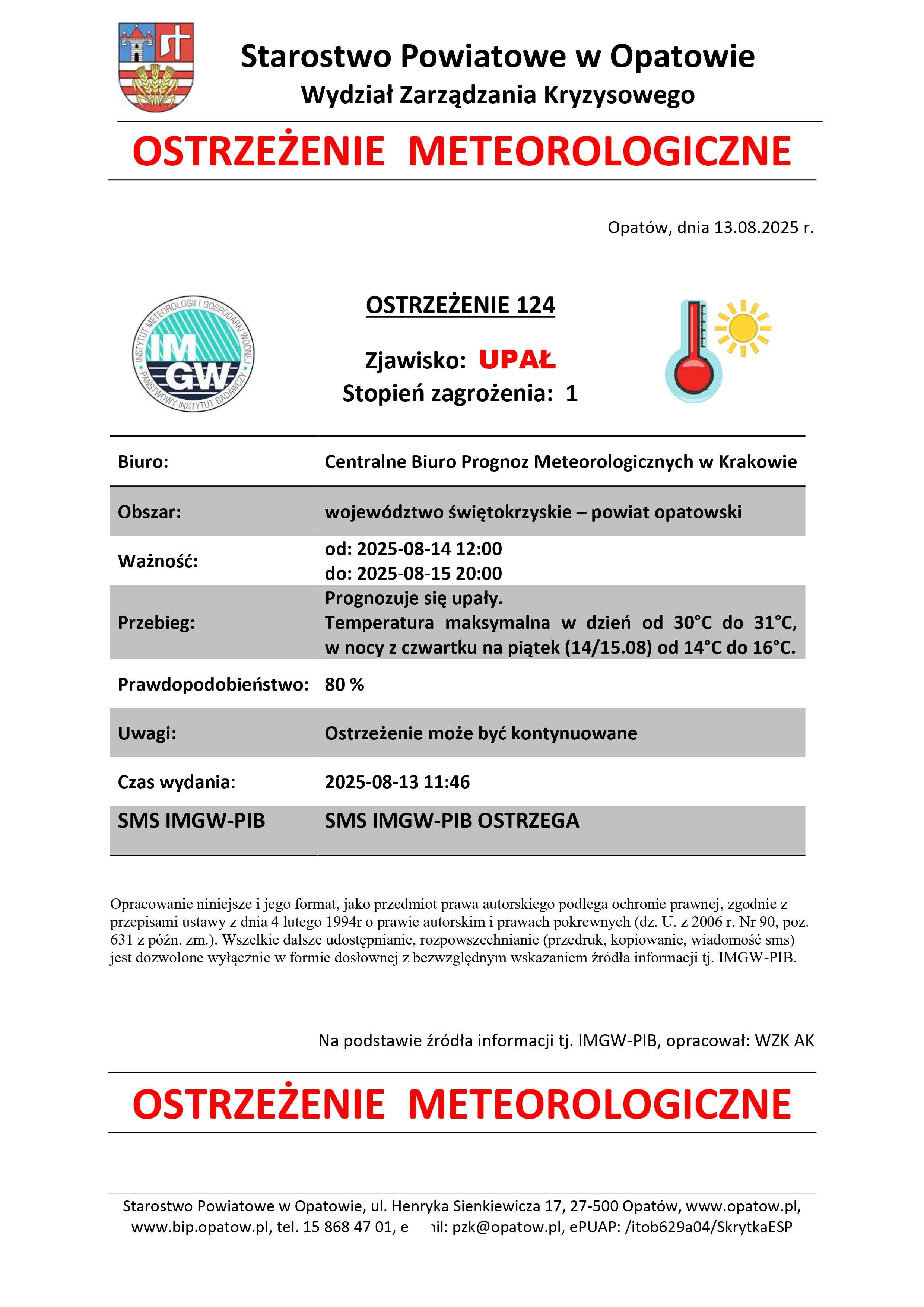 Ostrzeżenie meteo - upał