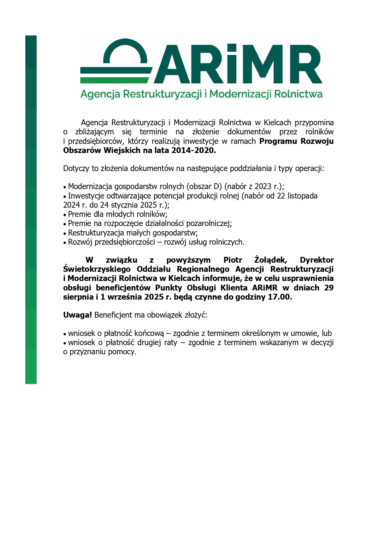 Komunikat dla rolników - Agencja Restrukturyzacji i Modernizacji RolnictwaArchiwum